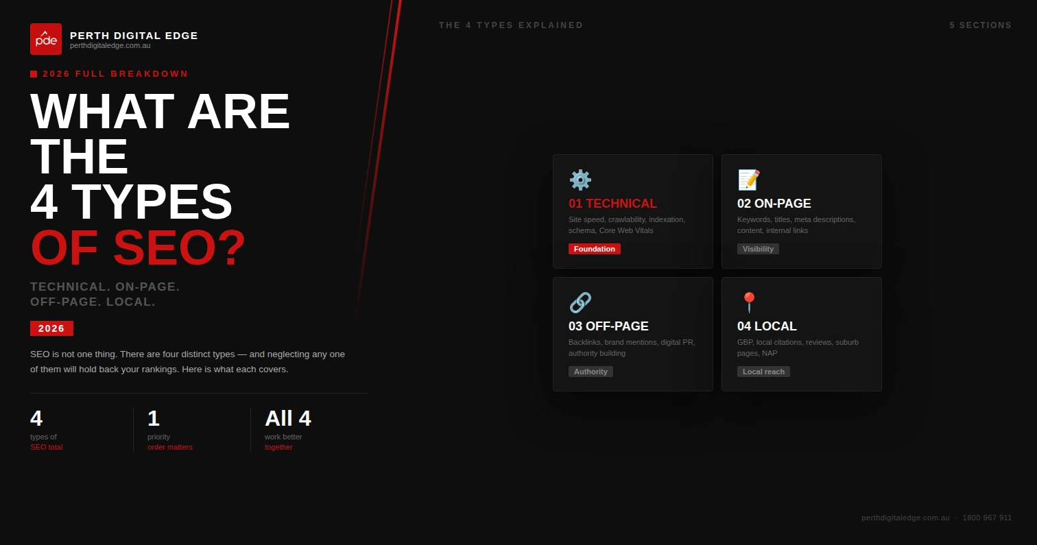 April 10, 2026Categories: Search Engine OptimisationWhen clients ask us what are the 4 types of SEO, we walk them through the same framework we use internally at Perth Digital Edge.…