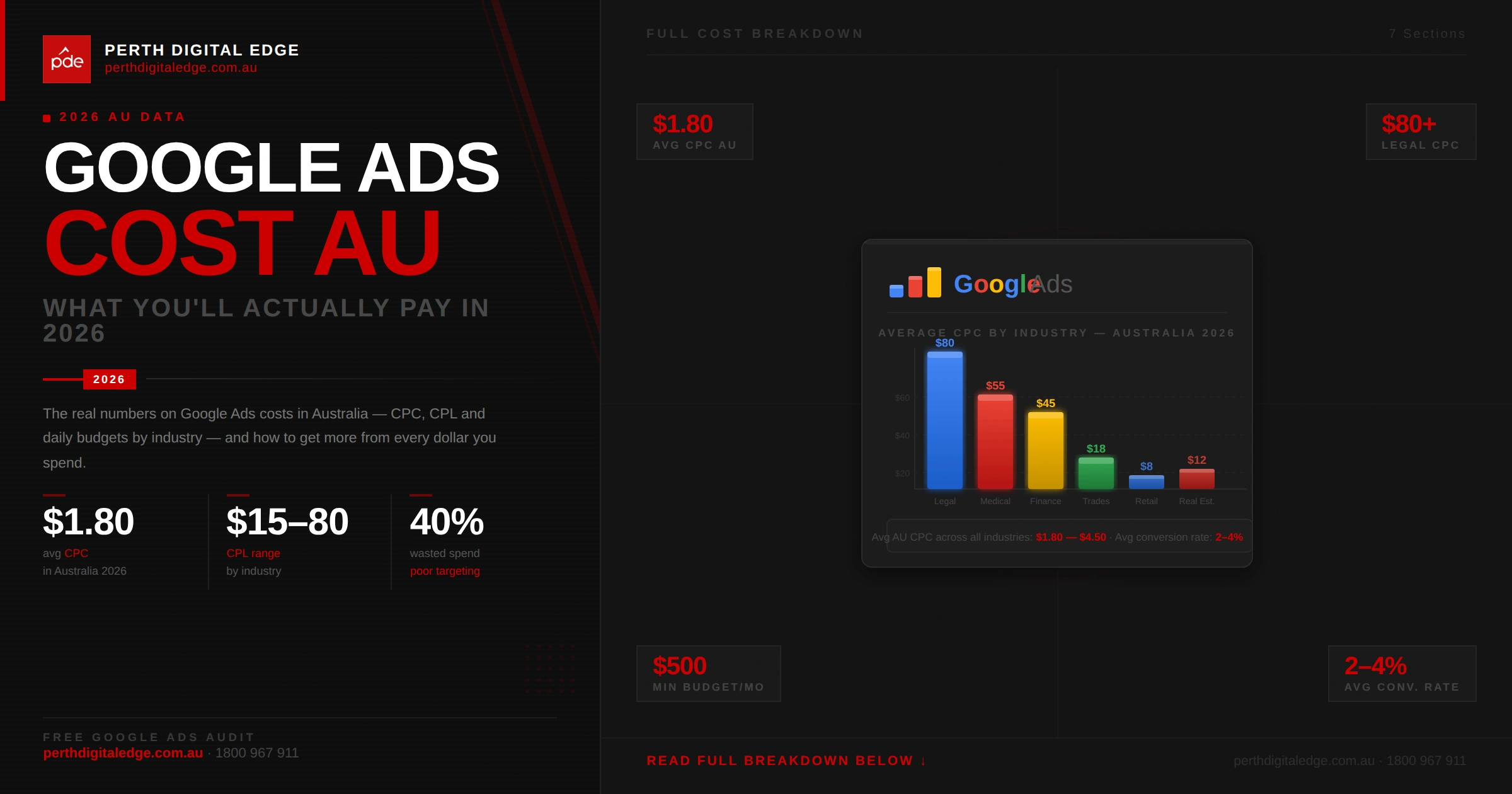 The honest answer is that no two accounts pay the same rate. But there are clear benchmarks. This guide breaks down real cost per click data by industry, monthly budget ranges by business size, pricing across every campaign type, and the specific levers Perth Digital Edge uses to reduce google ads spend for our clients. Every figure reflects what we see inside live accounts and verified Australian market data for 2026.