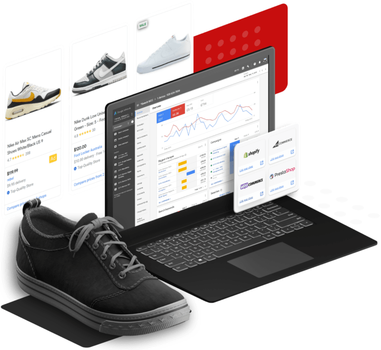 Our expert team transforms your product catalogue into eye-catching, sales-driving ads that capture shoppers’ attention at the perfect moment. We craft compelling listings that showcase your offerings, highlighting crucial details like price, colour, and availability. By leveraging advanced targeting and optimization techniques, we ensure your products reach the right customers, maximizing your ROI and boosting your bottom line. Don’t let your competitors steal the spotlight – let us help you harness the full potential of Google Shopping and turn browsers into buyers