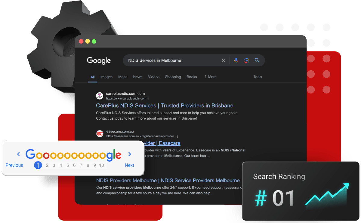 SEO, or Search Engine Optimisation, is the process of getting your website to show up in search engines like Google. For NDIS providers SEO can be very beneficial by increasing your website’s online visibility, driving organic traffic and establishing credibility. A good SEO strategy can get you in front of a bigger audience and connect with those who need your services the most.